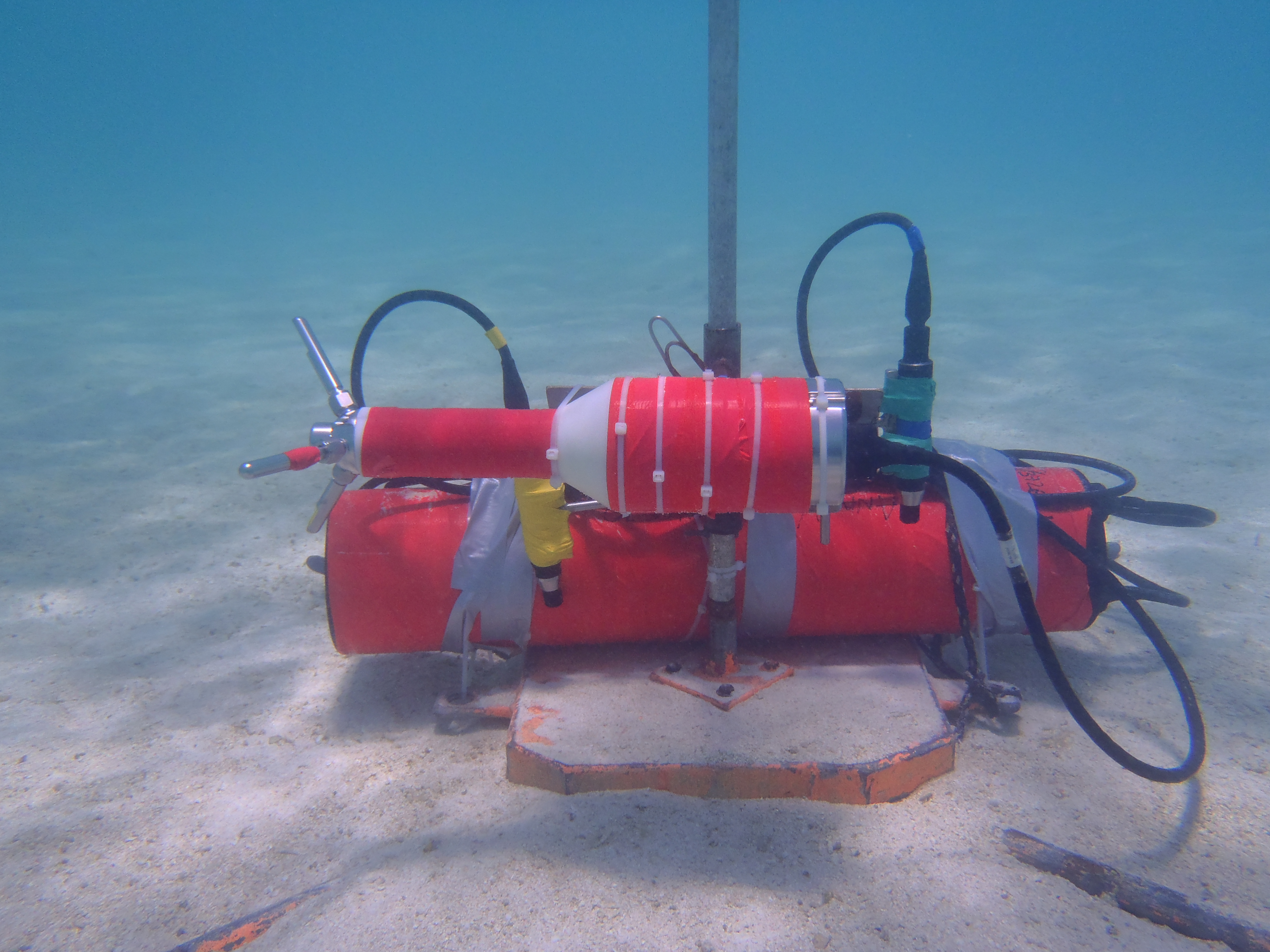 I spent the last week on One Tree Island Research Station. A little paradise on Earth. We were a team of five including myself, Steph Duce, Allison Phillips, Tommy Fellowes and Tom Donaldson-Browne. Over the last few years we have focused on the southern sand apron of One Tree Reef, and this time, we focused on the smaller but more energetic eastern sand apron. We deployed currentmeters and pressure transducers (PTs) to measure currents and waves. The most challenging was deploying one of our hydras on a single pod using small boats. It is a heavy but delicate instrument and, once all set in the pod it is very awkward to move. After many deliberations, and a bit of inspiration from Glen Shaw (our current manager), we decided to float the Hydra and swim with it to the deployment location. We then lowered it into place using a small boat (RV Seabreeze) and ropes. It was quite an experience and we grew so attached to the Hydra that we renamed her Helen.