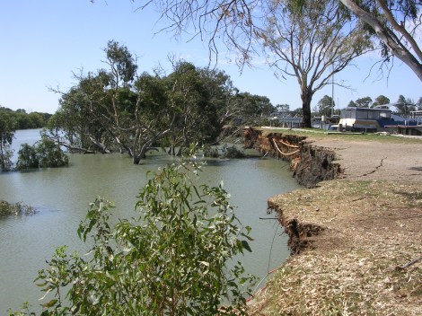 Riverbank’s usually fail during high-flow conditions due to erosion and scour of the toe of the bank, or during the recession of flood waters through rapid drawdown. The lower Murray’s banks however, unconventionally failed during extreme low-flow conditions at the peak of the Millennium Drought, when river flows were only 19% of their long-term averaged inflow (the 2008-09 period), and river levels dropped up to 1.5 metres below sea level.