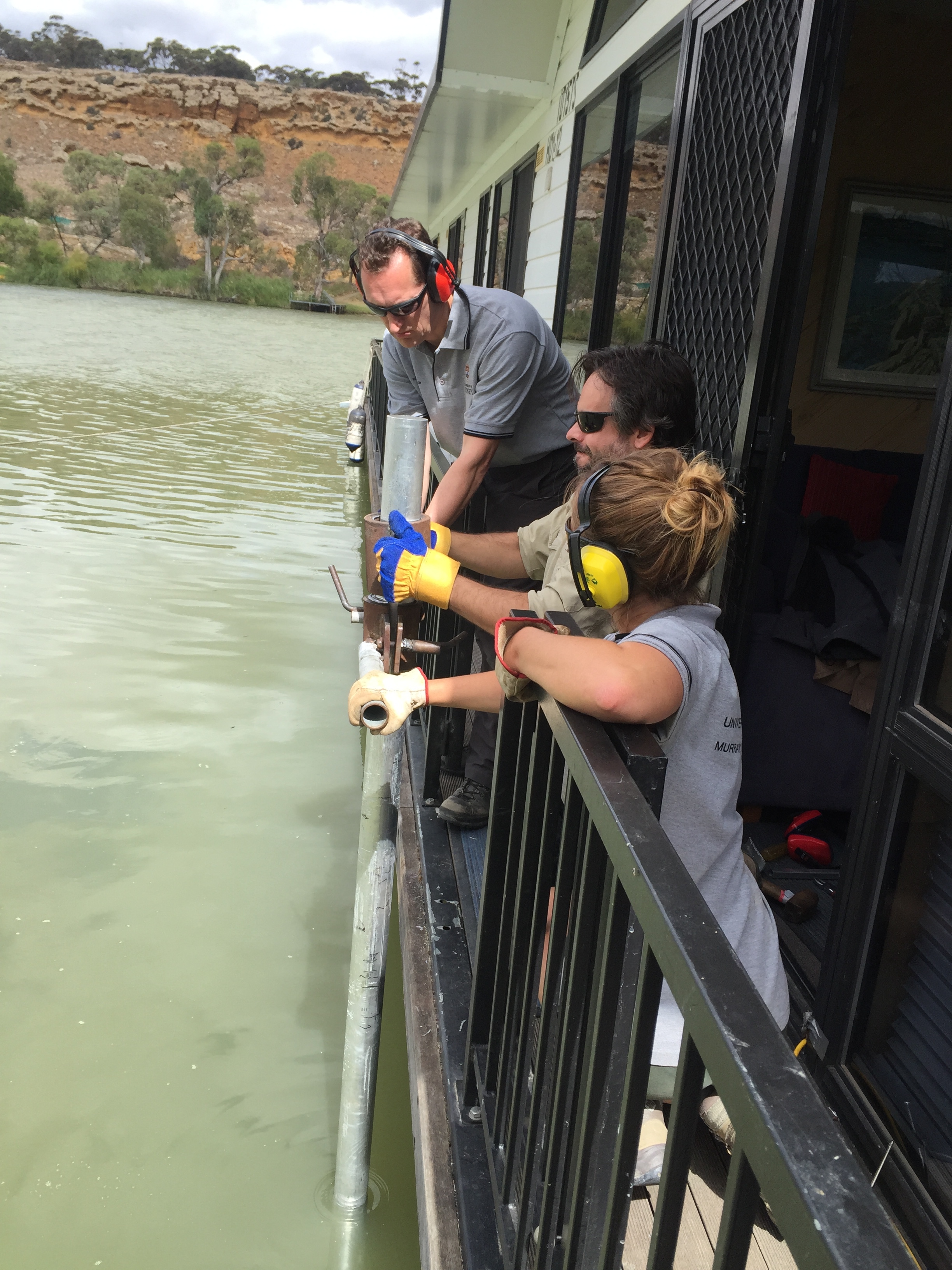 This March saw another successful trip down to the Murray marking the last field trip for Elyssa’s PhD and a handover to commence data collection for my research. My PhD on the Holocene evolution of the Lower Murray River will build upon Elyssa’s current work by determining the extent and evolution of the recently identified lacustrine valley fill sediment. Over the course of the two week trip we collected 10 cores, conducted 3 successful CPT tests and sampled surficial sediments between Wongulla and Wellington. Doug and Nicole Bergersen of Acoustic Imaging undertook multibeam bathymetric surveys to complement data acquired on previous trips. The result is an impressively comprehensive bathymetric dataset of the Murray River between Murray Bridge and Wellington, the first of its kind! This trip we were also fortunate enough to have visits from Professor Steven Darby from the University of Southampton, England, Associate Professor Ian Rutherfurd from the University of Melbourne, Professor Mark Jaksa from the University of Adelaide, and our own Dr Dan Penny. A special thank you to the crew Tom Hubble, Elyssa De Carli, Samantha Clarke, Dave and Marie Mitchell, Hannah Power, Stuart Jamieson and Kendall Mollison!