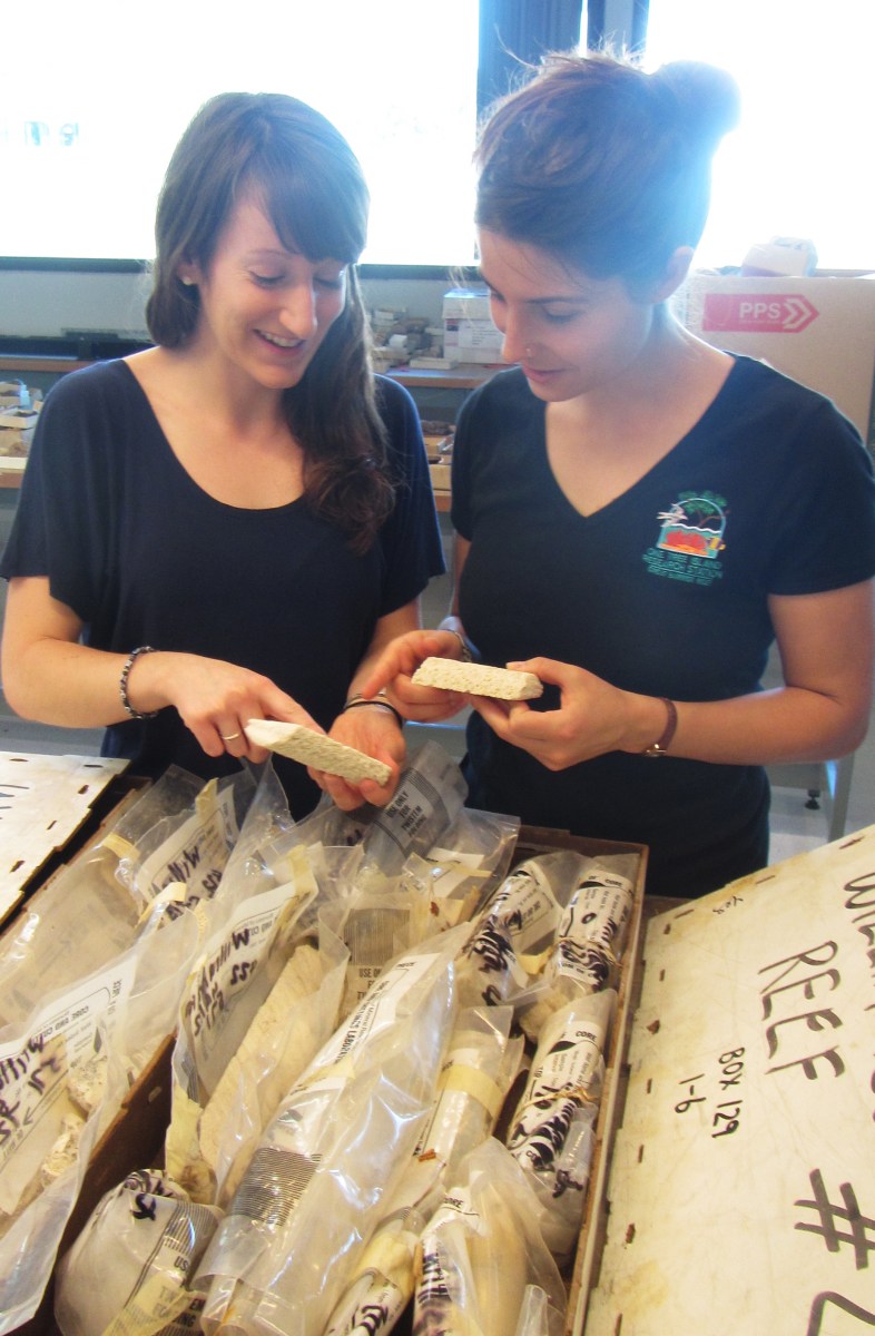 kels Published February 13, 2017 at 2079 × 3176 in Cracking open coral treasures of the past! ← Previous Next → Kelsey and Madhavi discussing the identification of a well-preserved Holocene coral in a core