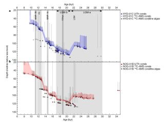Using fossil reef cores collected on Integrated Ocean Discovery Program (IODP) Expedition 325, this paper provides the most comprehensive reconstruction of relative sea level changes during the Last Ice Age. Based on these data we can now divide the Last Glacial Maximum into two distinct periods:
