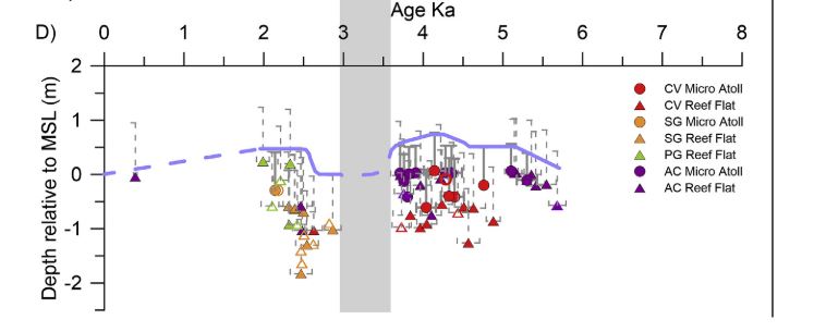 - Hiatus in reef flat growth identified from 3.7 to 2.5 ka.