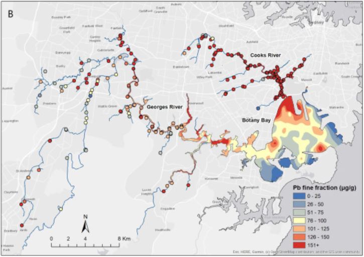 • Cooks and Georges Rivers discharge metal-rich sediments to Botany Bay.