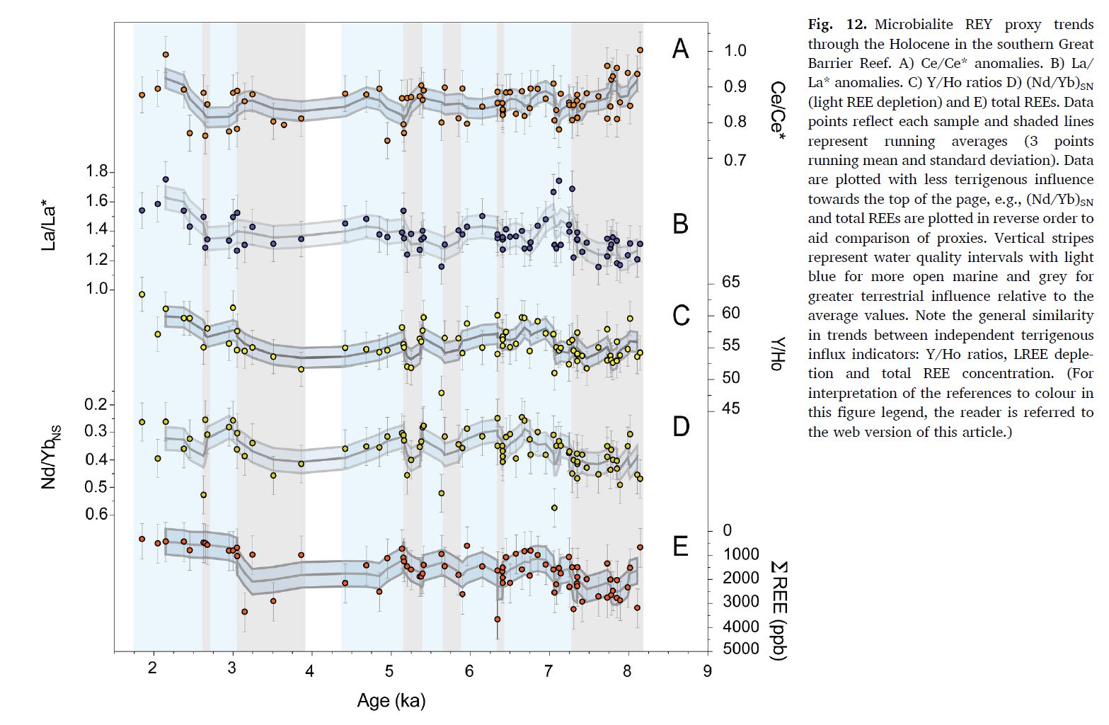 Salas-Saavedra, M., Webb, G.E., Sanborn, K.L., Zhao, J.-x., Webster, J.M., Nothdurft, L.D. and Nguyen, A., 2022. Holocene microbialite geochemistry records > 6000 years of secularinfluence of terrigenous flux on water quality for the southern Great Barrier Reef. Chemical Geology, 604. https://doi.org/10.1016/j.chemgeo.2022.120871