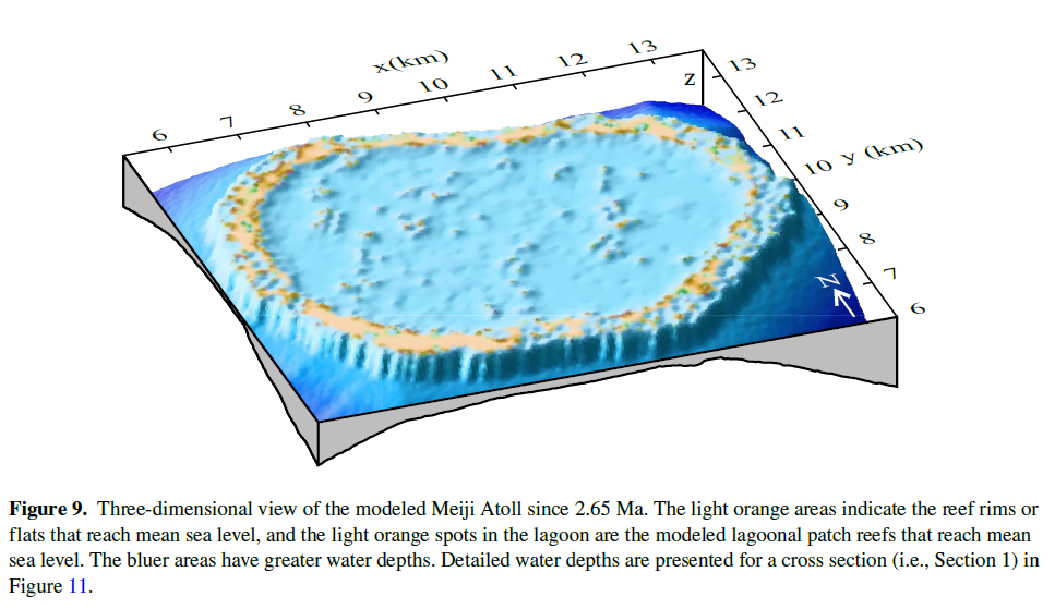 This is an interesting paper that combines observational data from Meiji Atoll in the South China Sea and numerical modelling tools (Badlands) to explore various theories about how Atolls form.