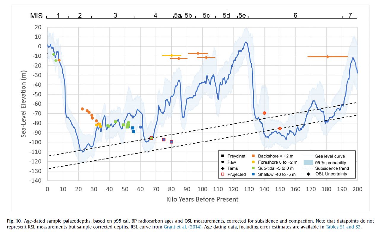 Our investigation reveals that each ridge consists of now-submerged relict coastal deposits that were formed over the last 200,000 years through wave, tidal, fluvial and aeolian processes. These features were dominantly preserved through early diagenesis and illustrate the longest continuous submerged palaeoshorelines reported to date.