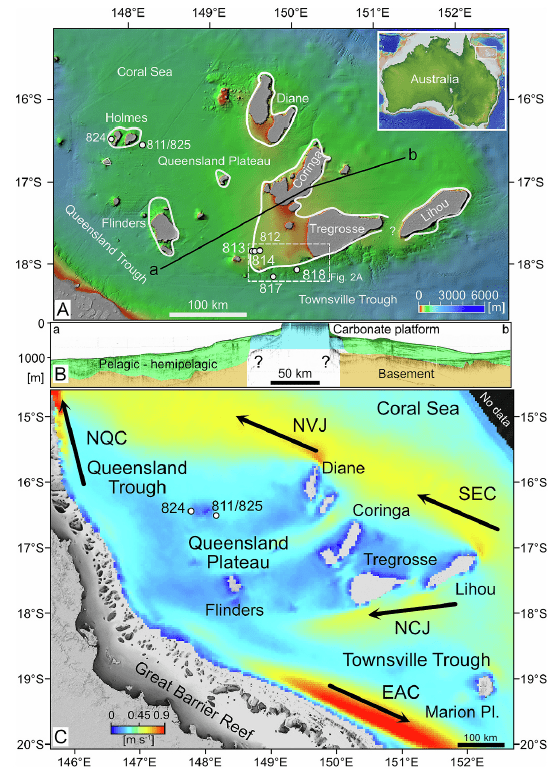 • The Queensland Plateau represents another example of a carbonate platform controlled by ocean currents during its evolution.